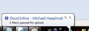 Closing it will send it to the IconTray. The Icon application's Tray Icon is used to display status messages during runtime. For example, when a file is dragged to the container, it is being added to the queue, and the following message appears: