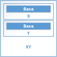 It's pretty clear: members of the non-virtual base class 'Base' are allocated as common data members of a derived class. It results in the 'XY' object containing two independent 'Base' subobjects. Here is a scheme to illustrate that: