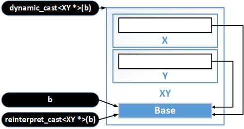 Base *b = Get(); XY *q = static_cast<XY *>(b); // Compilation error XY *w = (XY *)(b); // Compilation error