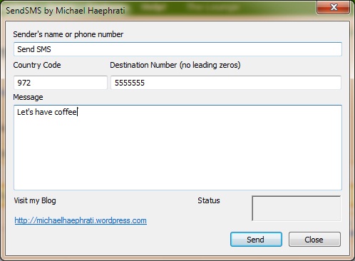 In order to use the code for your own application, it is advised to read the specifications for the SDK named HTTPSMS . Secondly, you need to open an account and obtain your user name and password, which can be hardcoded in the source code, or entered during runtime.
