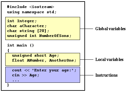 Do not worry if something else than the variable declarations themselves looks a bit strange to you. You will see the rest in detail in coming sections.