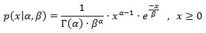 This distribution can be interpreted as the aggregation of α exponential distributions, each with β as parameter. It is often used to model waiting times.